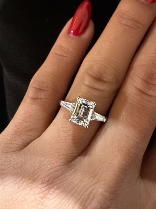 1.80 Ct E Renk Emerald Kesim Orta Taş - Toplam 0.30 Ct Trapez Kesim Yan Taşlı Pırlanta Yüzük